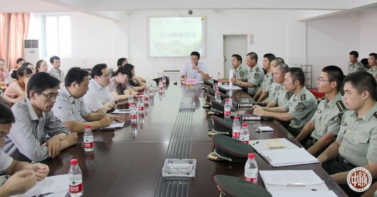 开营仪式后,全体官兵和班主任召开联席会议(下图),相互沟通学生情况,提出训练、教育及管理要求。全体新生参加了安全教育培训。担任本次军训的教官是来自解放军理工大学的军籍研究生优秀学员。