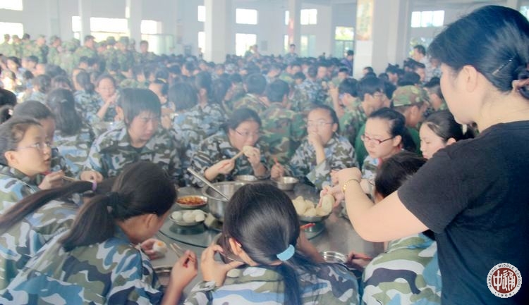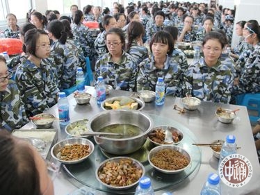 一天的训练从晨练(上图)开始,来自解放军理工大学的军籍研究生教官们带领大家进行基本动作的规范,学员们的认真劲给一天的辛苦训练开了一个好头。早餐大家普遍吃得特别香,可是为了一上午的训练量,细心的班主任老师还是在边上督促极少部分女孩子不要挑食,多吃点。