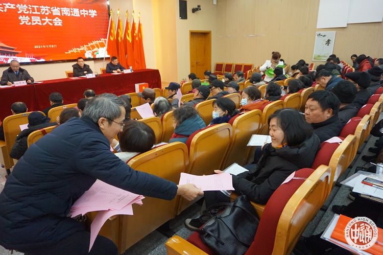 在各党支部分组讨论审议了工作报告,酝酿讨论新一届党委委员和纪委委员候选人名单后,党员大会以举手表决方式通过了《中国共产党江苏省南通中学党员大会选举办法(草案)》、监票人名单,随后进行无记名投票选举。