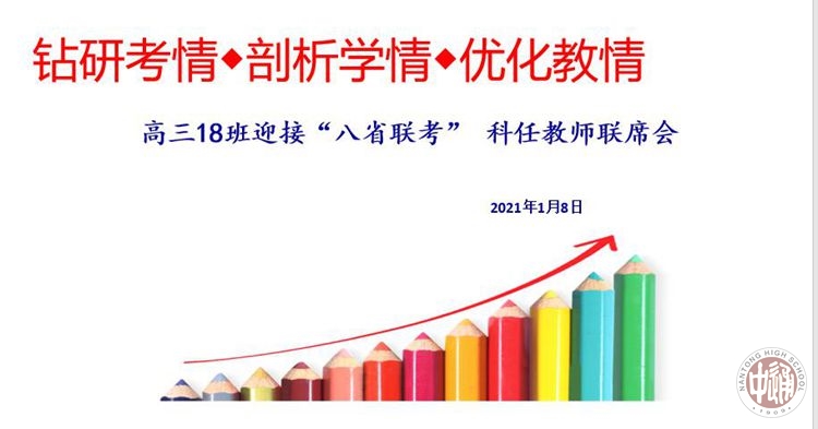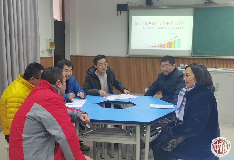 1月8日,以"钻研考情•剖析学情•优化教情”为主题的高三(18)班迎接”八省”联考任课教师联席会在崇问楼微格教室举行。会议由蹲点干部、党政办副主任蒋卫星组织实施。