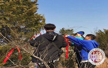植树完成后,同学们拾阶而上,登上剑山,欣赏江景、祈福许愿。共同系上祈福丝带,祈愿来日学业有成、金榜题名!