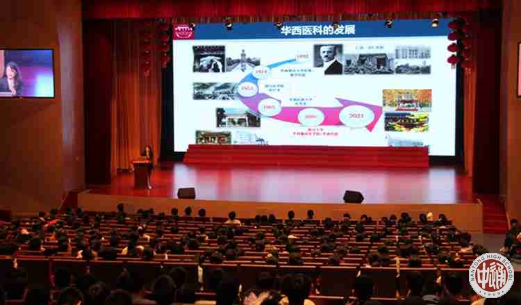 4月23日下午四川大学老师来到南通中学为我校学生作心理健康辅导讲座。首先四川大学华西临床医学院学生工作部孙晓明老师代表学校向我校沈惠祥副校长授予“四川大学优质生源基地”匾牌,并就四川大学及四川大学华西临床医学院/华西医院本科招生向与会同学做了简介。四川大学是教育部直属全国重点大学,岷峨挺秀,锦水含章。川大环境幽雅、景色宜人,大师云集,名师荟萃,开放办学,中西并举,如此读书治学的理想园地让在座同学神之向往。