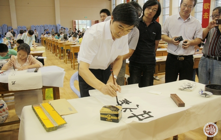 启动仪式结束之后,来自各县(市、区)的120多名中小学生现场进行了规范汉字书写比赛,市语委特邀的教师代表还进行了现场书写展示。我校选派了高二2班史思宇、高二7班王琛、高二8班陈佳杰三位学生参加了书写比赛,艺术学科陈旭老师参加了现场书写展示。