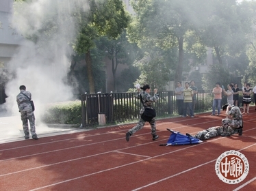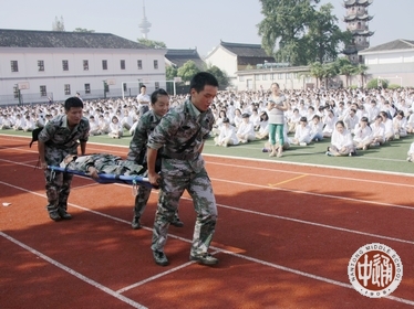 由高一年级部分学生组成的军训强化班从军训开始就不断加强训练,特别是军训结束回通之后的二十多天里,节假日和课余时间,总能看到他们刻苦训练的身影。终于,宝剑锋从磨砺出,在14日、15日举行的比武活动中荣获国防民防知识竞赛、应急防护技能、战斗精神队列歌曲、单个军人队列动作、阅兵式和分列式全部五个单项以及军训会操团体的一等奖,我校也是全大市参赛的十八所四星级学校中唯一获得所有项目一等奖的学校。