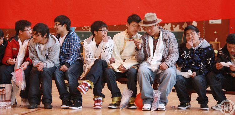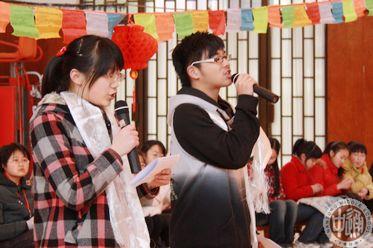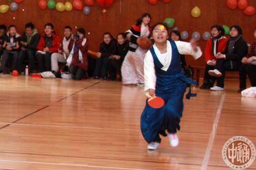 当校园歌手郭冬家同学深情地唱起著名藏族歌曲“吉祥谣”时,藏族同学欢呼雀跃地给他披上一条又一条洁白的哈达(右图)。条条哈达寄真情,声声祝福暖人心。人人都祈求在新的一年里吉祥如意、幸福安康。这是人世间最美好最质朴的情感,又有哪一个民族不是如此呢?紧接着全场各种有趣的游戏一个连一个:运球大赛、词语接龙、穿越呼啦圈、情境表演猜猜猜。游戏间隙则是此起彼伏的民族歌曲联唱,还有美妙的情诗朗诵:卓玛的情调多如天上的星星...... |