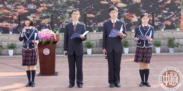 校长助理、校关工委副主任沈惠祥带领全体同学面向国旗庄严宣誓:“我是中华人民共和国公民,在18岁成年之际,面对国旗庄严宣誓:我立志成为有理想、有道德、有文化、有纪律的社会主义公民。遵守宪法和法律,热爱社会主义祖国,拥护中国共产党的领导。正确行使公民权利,积极履行公民义务,自觉遵守社会公德。服务他人,奉献社会;崇尚科学,追求真知;完善人格,强健体魄,为中华民族的富强、民主和文明,艰苦创业,奋斗终生!” |