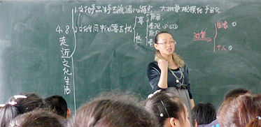 两位老师在二中的工作很辛苦。前天,姚老师自己上了1节课,另外还听了当地老师的6节课外加评点,课余自己要批改作业。当地学校高三年级每周要上课六天半,所以他俩基本没有休息日。从姚老师日志中我们还看到,二中是一所汉语学校,教师缺编达30多人,一些年轻女老师要上3个班的语文课。右图这位老师怀孕了,还要代表学校去参加教学比赛。 |