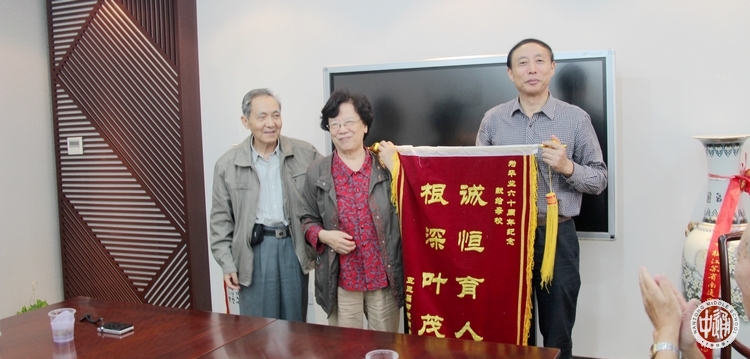 1953届校友欢聚母校 来源:本站原创 发布时间:2013-10-10 15:56:17 浏览次数: 次 【字体:小 大】 10月9日,毕业60周年的1953届部分校友回母校欢聚,校友们向母校敬赠旌旗“诚恒育人,根深叶茂”,祝福母校传承“诚恒”校训,再创新的辉煌。校党委书记韩明飞全程参加了相关活动。 分享到: 【打印正文】