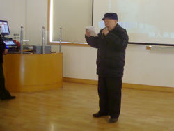 朗诵唱歌,高潮迭起。一位有着85岁高龄的老爷爷第一个给我们朗诵了他自己创作的诗歌,抑扬顿挫的语调,慷慨激昂的情感,赢得了满堂喝彩。随后,几位老干部相继我们唱了他们那个年代的红歌。最后,同学们也为老干部们献上了一首四人合唱的歌曲,让他们感受到我们青春的活力与热情。