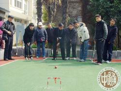 学打门球,收获颇丰。在来之前,大多数同学都没有接触过门球,到了老干部活动中心,老爷爷老奶奶们亲自为我们示范教我们打门球。步伐、手势、眼神,每一个细节,他们都一点一点耐心地教着我们。同学们也不辜负他们的希望,进步明显。最后,也能像模像样地打几球了。