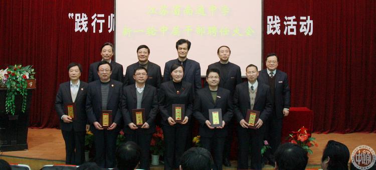 江苏省南通中学新一轮中层干部聘任大会于3月30日下午在敬铭楼报告厅召开,全体教工出席。 会上,校长姚天勇向各职能部门新聘任的主任、副主任和主任助理颁发了聘书。 |