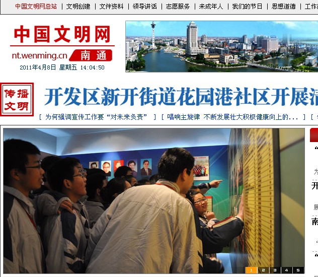 点击“中国文明网-南通”首页幻灯组图中的该照片即进入报道页面如下: