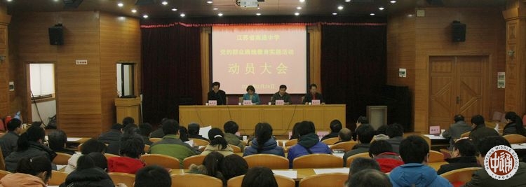2月24日下午,我校在图书馆二楼报告厅召开党的群众路线教育实践活动动员大会,传达党中央和省市委关于开展教育实践活动的会议精神和总体要求,对学校的教育实践活动进行动员部署。市委教育实践活动第十二督导组组长胡泓石,副组长顾润华,组员刘彤、张红军、缪应华出席会议。校党委书记、校教育实践活动领导小组组长朱全中作题为《践行群众路线,办人民满意的通中教育》的动员报告,对我校开展教育实践活动作了全面动员和具体部署。胡泓石作了督导工作讲话。会议由校党委副书记、校长姚天勇主持。